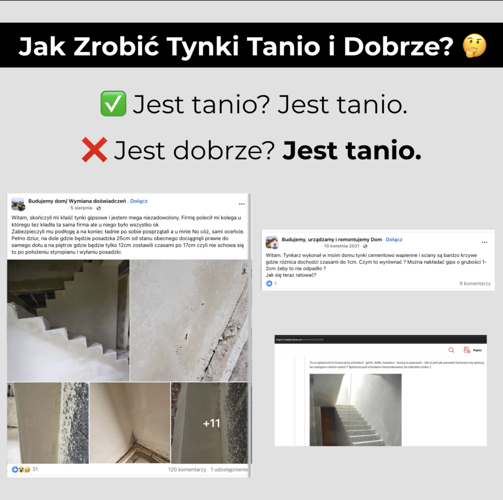 - Uprzednie poszukiwanie firmy tynkarskiej da Wam także czas do sprawdzenia przyszłego wykonawcy oraz zobaczenia jego prac (my praktykujemy zapraszanie klientów na nasze inwestycje. Nie mamy nic do ukrycia).